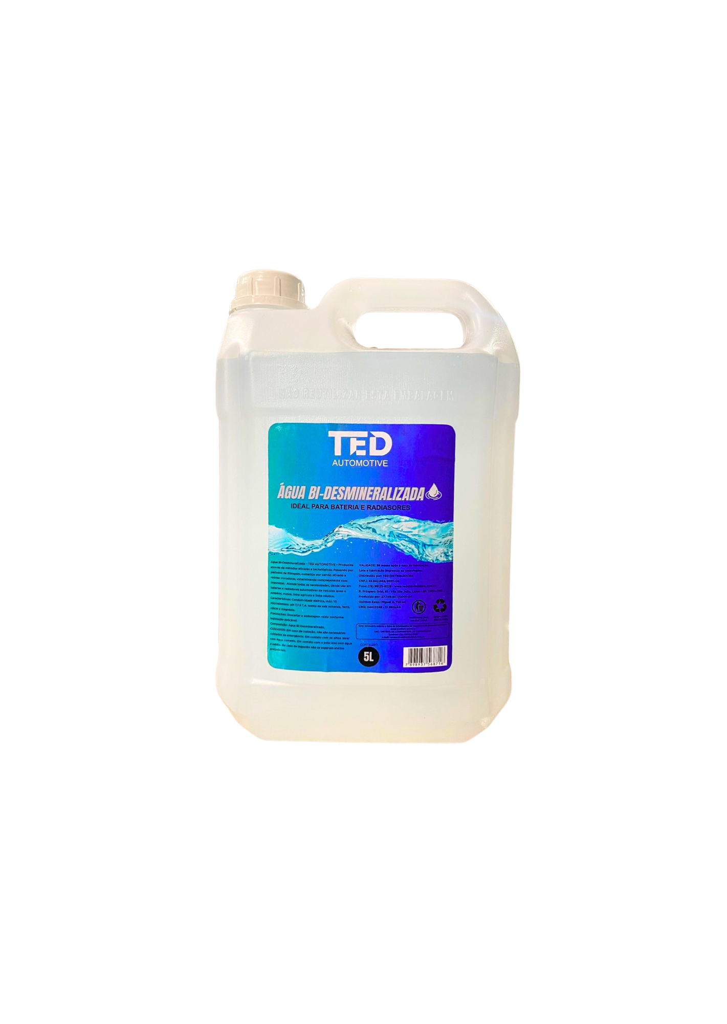 Recomendada para uso em baterias e radiadores automotivos de veículos leves e pesados, motos, linha agrícola e linha náutica. Isenta de sais minerais, ferro, cálcio e magnésio.