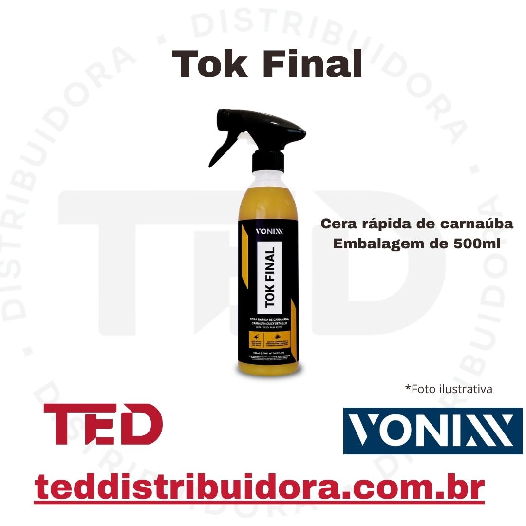Tok Final foi desenvolvida com a mais pura cera de carnaúba cearense e polímeros de última geração, que protegem e realçam o brilho de pinturas automotivas. É ideal para ser usada após a lavagem e na manutenção da proteção da pintura do veículo entre os enceramentos. Pode ser aplicada em todas as partes do veículo, incluindo vidros, para-choques e borrachas.
